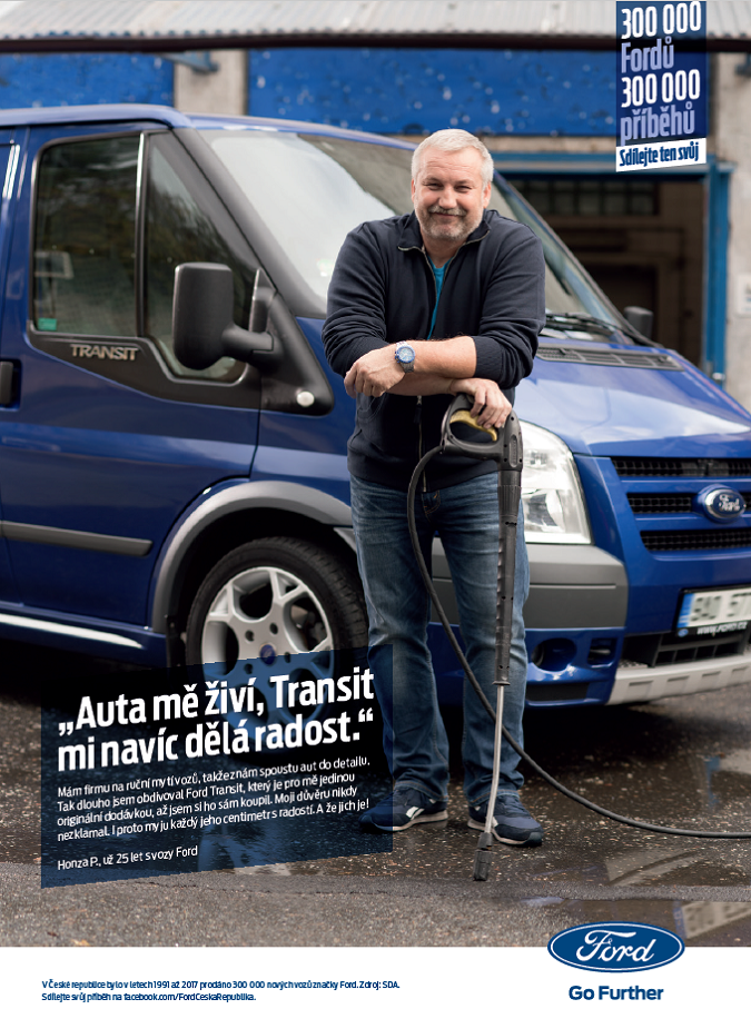 Společnost Ford Motor Company komunikuje novou kampaní tři sta tisíc prodaných vozů v České republice. „Tři sta tisíc prodaných vozů pro nás není jen číslo do statistik. Znamená to také tři sta tisíc lidských příběhů s našimi auty, a právě na ně se zaměříme v kampani, která právě startuje,“ uvedl Libor Beneš, marketingový ředitel společnosti Ford Motor Company.