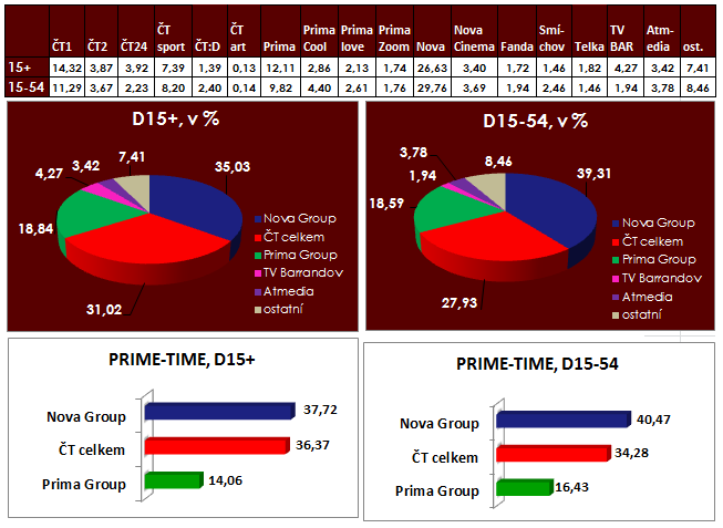 Nejvyšší sledovanosti v pátečním televizním večeru dosáhla opět pohádka, tentokrát Čert ví proč (TV Nova), kterou v průměru zhlédlo necelých 900 tisíc diváků starších 15 let. Do výsledku páteční sledovanosti významně promluvilo kvalifikační utkání českých fotbalových reprezentantů v Turecku. Přímý přenos fotbalového utkání se zařadil k nejsledovanějším pořadům večera. I díky tomu byla přízeň televizních diváků v pátečním hlavním vysílacím čase rozložena rovnoměrně mezi skupiny Nova a České televize.