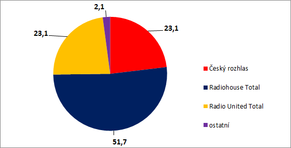 Z pohledu síly jednotlivých mediálních zastupitelství si polepšily stanice Českého rozhlasu na 23,1 %. Jedničkou trhu jsou stanice zastupované společností Radiohouse (51,7 %), konkurenční síti Radio United Broadcasting náleží 23% podíl.
