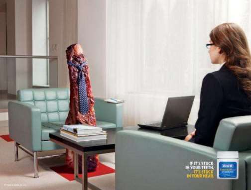 Když jde škodlivé účinky zbytků jídel mezi zuby, má se přehánět, míní výrobce dentálních nití Oral-B a reklamní agentura Publicis, New York.