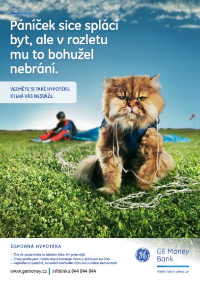 GE Money Bank od 26. srpna spustí nový koncept marketingové komunikace, která odráží změnu positioningu značky. Prostřednictvím netradičního hrdiny – sarkastického kocoura – se chce banka stát snadno rozpoznatelnou značkou, která je odvážná, dynamická, inspirativní a inovativní.