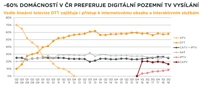 Terestrickou platformu využívá 60 % domácností v České republice. Je otázkou, nakolik přechod na druhou vlnu digitalizace sníží podíl této platformy v populaci. Při přechodu z analogu na digitální terestrické vysílání DVB-T poklesla terestrika o 20 %. „Děláme všechno pro to, aby platforma DTT přechodem na DVB-T2 neutrpěla,“ uzavřel Gebauer.