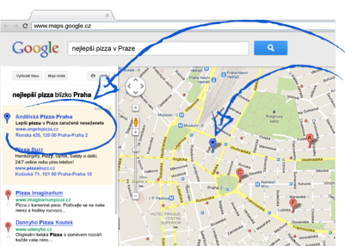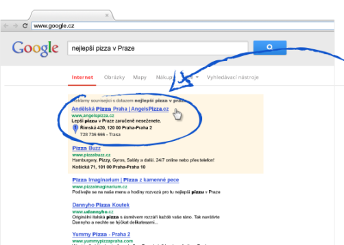 Na Mapách Google bude reklama zvýrazněna modrým špendlíkem.