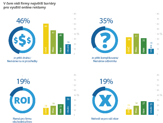 Až 35 % respondentů vidí komplikovanost online reklamy jako hlavní bariéru pro její využití.