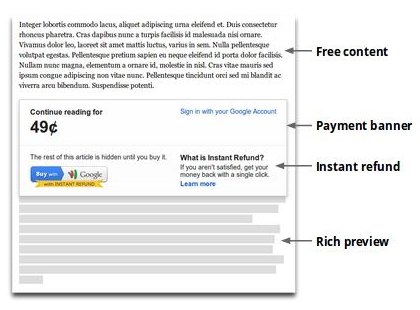 Novinku vyhledávače právě testují weby zaměřené na odborné texty, a to Oxford University Press, Peachpit a DK. Návštěvník má možnost přečíst si část textu zdarma a rozhodnout se, jestli jej chce koupit. Po zaplacení 49 centů dostane přístup k celému textu. Pokud si to do 30 minut rozmyslí, může požadovat vrácení peněz. Google sází na to, že lidé raději zaplatí pár centů za jeden článek, který je zajímá, než by kvůli tomu kupovali přístup na celý web. David Brauchli z Piano Media si ale myslí, že toto funguje, jen pokud se jedná o výzkumné články nebo texty archivní, ne zpravodajské a aktuální. Podle něj Google také nastavil příliš vysokou cenu a měl by zlevnit.