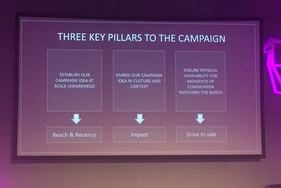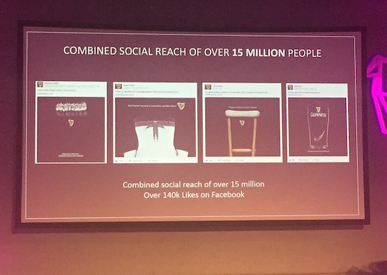 V době mistrovství zvolil Guinness komunikaci na všech obrazovkách – tedy nejen v televizi, ale i na desktopu, tabletu a mobilních telefonech. Cílil na lidi v hospodách, geolokalizoval je ve fanzónách Heinekenu nebo komunikoval v mobilním prostoru v době, kdy v televizi běžely reklamy na Heineken.