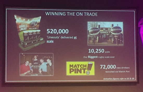 Výsledkem byl 16% nárůst objemu Guinness ve Velké Británii a 1% v Irsku. Tržní podíl se ve Velké Británii navýšil o 0,5 %, zatímco Heineken jej zvětšil jen o 0,3 %. V Irsku si Guinness přidal k tržnímu podílu další 1 %, Heinekenu se naopak snížil. A navíc Guinness svého konkurenta přeskočil o 0,3 % i ve spojení značky s mistrovstvím.