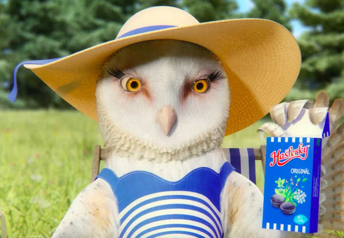 V nové reklamě Hašlerek, jež cílí primárně na spotřebitele ve věku 20 až 50 let, tak vystupuje sova pálená, jež se oddává nezvyklé činnosti – opalování. „Sova byla ideální volba, jelikož všichni vědí, že je to noční pták a že dělá něco, co jí není úplně přirozené, ale prostě chce být ,in‘ a jít s davem,“ dodává Iva Ambrožová.