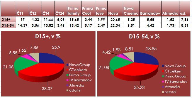 Na ostatních kanálech si nadprůměrně vedly krimifilm Šílená hra na TV Barrandov, který se ve skupině D15+ přiblížil 9% podílu, a komedie Agenti nula nula na Nova Cinema (share 7,23 %, D15+).