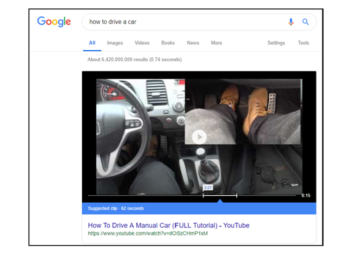 Google nedávno představil odpověď ve vyhledávání pomocí videa. V případě, že firma má řešení pro uživatele, které vyžaduje praktickou ukázku, vyplatí se dnes pojmenovat video přesně tak, jak se uživatelé nejčastěji ptají.