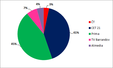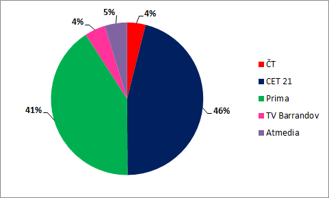 Nejsilnější reklamní podíly mají nadále skupiny Nova a Prima. Podíl na prodaných TRPs ale nemusí odpovídat podílu, které jednotlivé televizní subjekty mají na tržbách z prodeje reklamního prostoru.