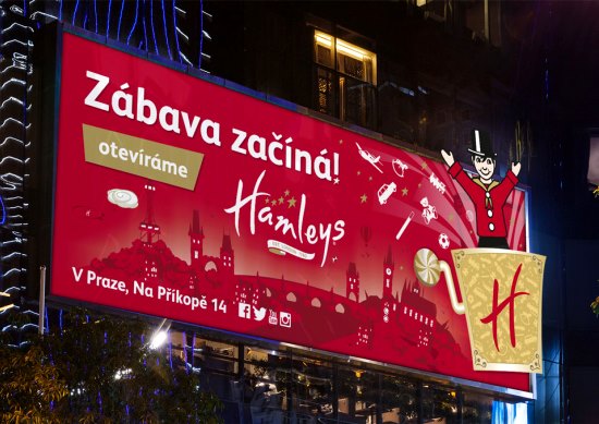 Tento týden otevřelo v pražské ulici Na Příkopě britské hračkářství Hamleys. V bývalých prostorách ČSOB o rozloze šest tisíc metrů čtverečních tak vzniklo největší hračkářství v Evropě, kombinující prodejnu se zábavním parkem. Minimálně do konce roku bude tuto 260 let starou hračkářskou značku podporovat kampaň „Zábava začíná“, která má zdůraznit ojedinělost hračkářství, kde „zábava začíná, ale nikdy nekončí“.