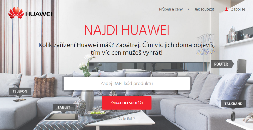 Na microsite www.NajdiHuawei.cz spustila značka soutěž o přístroje Huawei, do níž se uživatelé registrují prostřednictvím kódů výrobků Huawei, které vlastní. Značka tak chce využít skutečnosti, že některý z jejích přístrojů (router, mobilní telefon, tablet a mnoho dalších) má doma na dva miliony Čechů, velká část z nich o tom ale neví. Podobnou strategii bude značka aplikovat v příštím roce i na dalších evropských trzích.