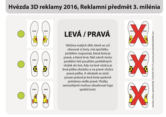 Ve speciální kategorii Reklamní předmět 3. milénia, ve které soutěží dosud nerealizované návrhy, zvítězila práce Levá pravá od Jaroslava Jerhota. Ta má napomoci dětem při obouvání bot a rozpoznávání, která bota je pravá a která levá. Návrh tento problém řeší použitím potištěných vložek do bot, kdy na levé vložce je levá půlka obrázku a na pravé vložce pravá půlka. Obrázek se složí, pouze pokud je levá bota správně položena vedle pravé. Vložky samozřejmě mohou obsahovat logo společnosti.