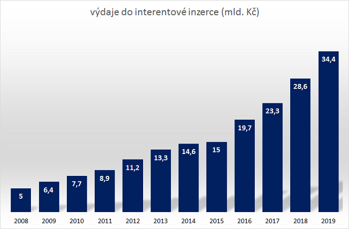 Internetová reklama měla loni dosáhnout 34,4 mld. Kč, údaj byl zveřejněn