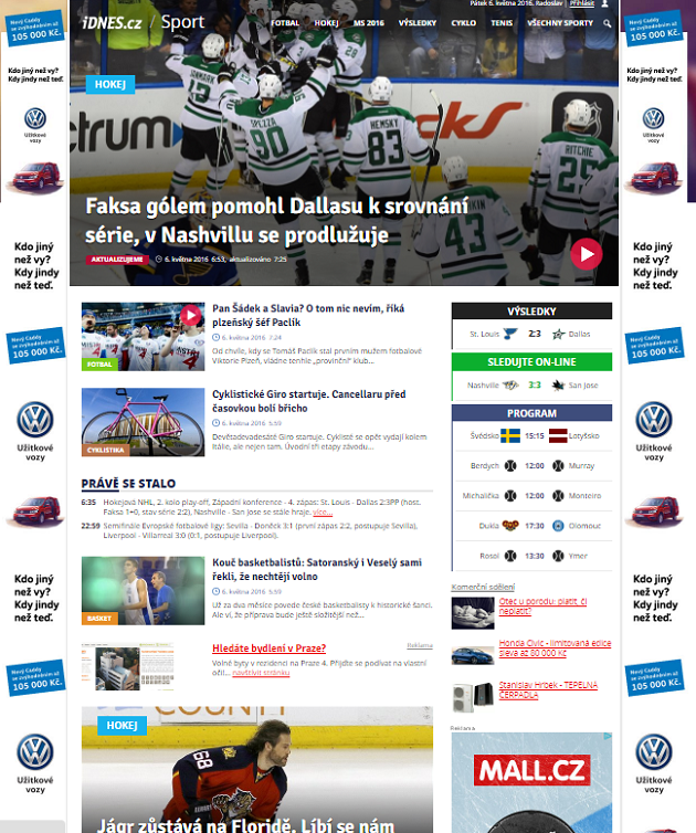 Vrcholné sportovní akce roku 2016 nabídne zpravodajský portál iDnes.cz v nové podobě. Těsně před startem hokejového mistrovství světa v Rusku spouští novou titulní stranu sportovní rubriky, mění se kompletně i grafika článku. Širší je také obsah. Nová tvář sportu se připravovala od loňského podzimu.