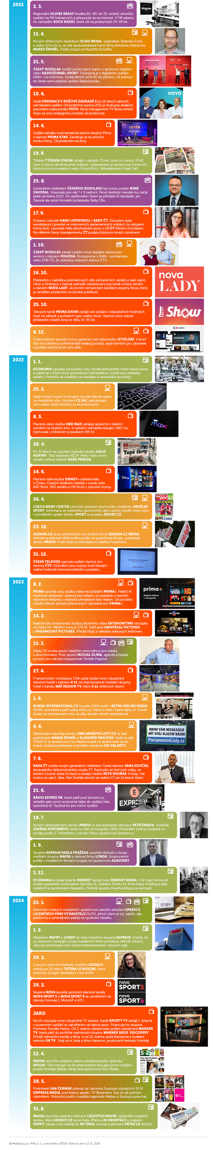 Infografika: Milníky českých médií 1989-2024