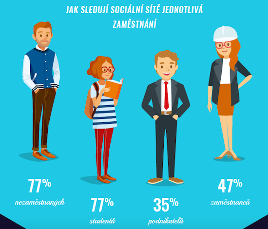 Sociální sítě a moderní technologie pochopitelně nejvíce sledují mladí lidé. Jejich návštěvnost klesá s věkem. Nejaktivnějšími uživateli jsou lidé ve věku 18–29 let (71 %), dále lidé ve věku 30–44 let (54 %). Uživatelů, kteří své účty kontrolují denně, je ve věku 45–59 let jen 31 %. Z pohledu zaměstnání na sociálních sítích nejvíce času tráví studenti (77 %) a nezaměstnaní (77 %), nejméně je pak sledují podnikatelé (35 %). „To může být podnikatelům ke škodě – potřebují totiž budovat svůj osobní brand a zajistit, aby se o nich vědělo. Důležité je proto naučit se s nimi efektivně pracovat. Skvělou inspiraci lze najít na profilech zkušenějších – například markeťačky Pavlíny Loužeňské, Martina Jaroše nebo politika Dominika Feriho – všichni jsou ve veřejném prostoru vidět často,“ doplňuje Houser.