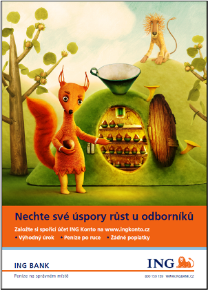 V pátek 17. ledna spouští ING Bank novou kampaň s mottem: „Peníze na správném místě“, která chce poukázat na to, že spořit se nemá na běžném účtu. O výhodách spořicího účtu budou veřejnost přesvědčovat loutky „spořivé veverky, symbolického štědrého lva a trochu nešťastného a zmateného ježka".