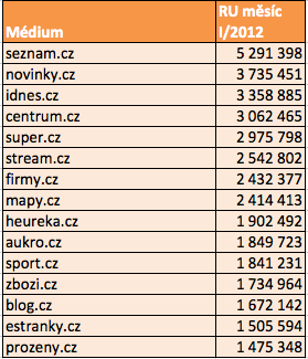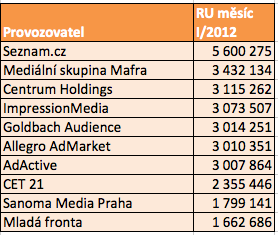 Většina nejsilnějších provozovatelů si v počtu reálných uživatelů v meziročním srovnání polepšila. Sedm z nich se už dostalo nad hranici 3 mil. uživatelů měsíčně. Nejvíce z prvních deseti provozovatelů vyrostlo v lednu 2012 oproti lednu 2011 díky akvizici v průběhu loňského roku uskupení Allegro AdMarket (+53 %). Za stejné období si také významněji polepšila mediazastupitelství AdActive (+34 %) a Goldbach Audience (dříve ARBOinteractive +33 %).