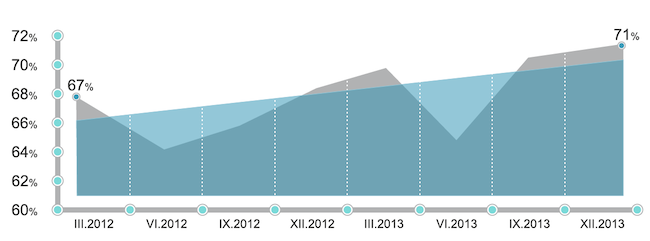 Rozložení uživatelů podle pohlaví je u nás ze všech zkoumaných států nejméně rovnoměrné – 52 % návštěvníků českého internetu tvoří muži, zatímco v jiných zemích spíše mírně převažují ženy. Česko také se 17 % vykazuje nejvyšší podíl nejstarší věkové skupiny 55+, naopak nejméně uživatelů v tomto věku je na Slovensku (11 %). Návštěvnost z mobilních zařízení se v průběhu jednoho roku zvýšila desetkrát. V prosinci 2013 bylo z mobilních telefonů a tabletů provedeno již 10 % zobrazení stránek, přičemž i nadále se očekává konstantní nárůst.