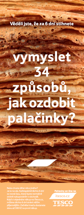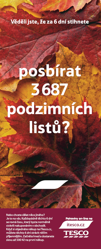 iTesco, služba na nákup potravin online, spouští svou kampaň, jejíž hlavním motivem je úspora času. Čas, který zákazníci ročně ušetří nakupováním potravin online, tedy šest dní, je přepočítán například na 54 nových přečtených pohádek, zhlédnutí 18 filmů či nasbírání 3 687 podzimních listů.