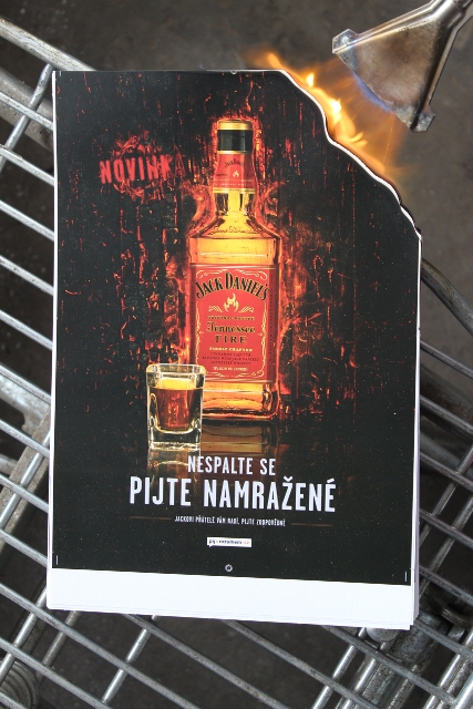 Novinka Jack Daniel’s Fire, kombinující whisky s příchutí skořice, zdůrazňuje při launchi svou „ohnivou“ chuť. V tiskové kampani proto nechala ohořet na 35 tisíc vlepů, čímž docílila charakteristické vůně i struktury.