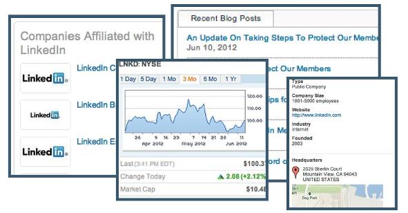 Stejně jako u ostatních sociálních sítí i na LinkedIn je nezbytné strategicky promýšlet obsah pro firemní profil. Obsah by měl kombinovat novinky z firmy, zprávy z firemních blogů, statistiky a zajímavá čísla. Ke zvýšení atraktivity je možné na úvodní stránce využít videa, které bude ve zkratce společnost prezentovat. Dále je užitečné, zejména k budování důvěryhodnosti, používat funkce „News Module“, jež ukazuje veškeré zmínky v médiích. Stejně tak si lze výrazně zjednodušit aktualizaci profilu prostřednictvím integrovaného RSS kanálu a/nebo Twitteru. A pokud se to hodí, dobré je přidat i adresu firmy a aktuální přehled jejích akcií. Dobrým příkladem může být profil samotného LinkedInu.