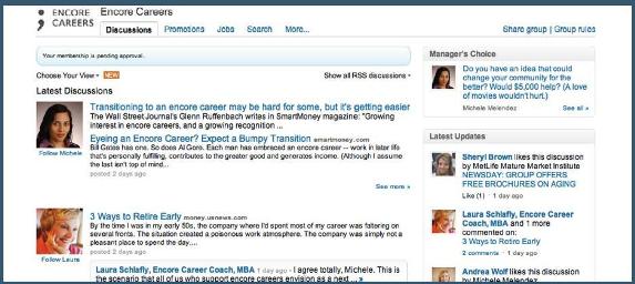 Nakonec je možné vytvořit skupinu LinkedIn, která se bude přesně zaměřovat na určitou cílovou skupinu. V rámci této skupiny je možné s jejími členy diskutovat, přičemž prezentovaná společnost by zde měla vystupovat jako odborník ve svém oboru a odpovídat na kladené otázky. Tento způsob například využil neziskový think tank Civic Ventures, který na LinkedIn založil skupinu „Encore Careers“, kde bylo se seniory možné diskutovat na různá relevantní témata. Podle serveru Mashable.com se tak neziskovce podařilo získat ve velmi krátkém časovém horizontu více než 1 500 nových uživatelů.