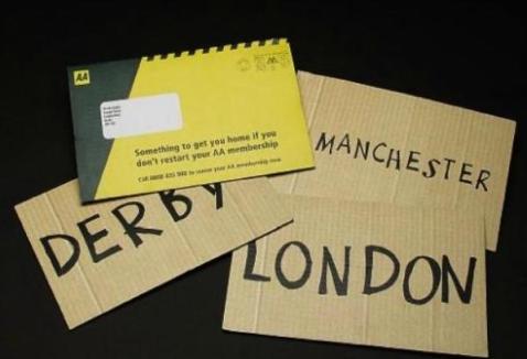 Další úspěšnou a neotřelou kampaní je britský direct mail, jenž nabádal k obnovení členství u AA asistenční služby. Dopis rozesílaný u příležitosti anglického derby měl výrazně obrandovanou obálku s nápisem: Něco, co vás dostane domů ve chvíli, kdy si neobnovíte členství u AA a obsahoval nadepsané cedule na stopování podle místa trvalého bydliště.