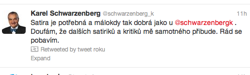 Ten ocenění pro satirický účet @schwarzenbergk už komentoval na svém účtu.