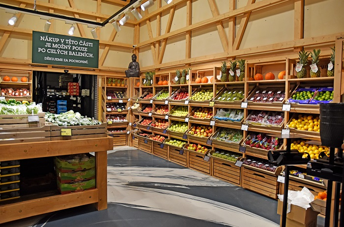 Prodejna má speciální oddělení pro ovoce a zeleninu. Nabízí téměř tři stovky položek, které se mění podle ročního období a pěstitelských sezón. Řada pochází od českých pěstitelů. V sortimentu je i exotické ovoce a zelenina nebo čtyřicet druhů čerstvých nebo řezaných bylinek, nepasterizovaná čerstvá šťáva nebo připravený obědový zeleninový salát.