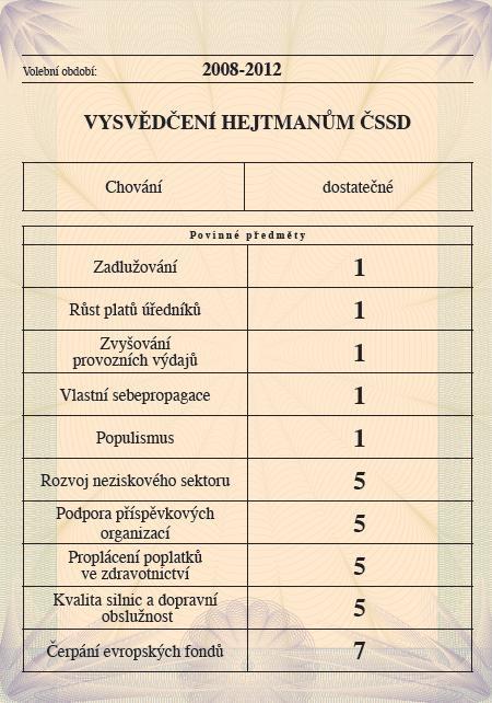 ODS odstartovala svou předvolební kampaň neformálně vysvědčením, které vystavila sociálnědemokratickému vládnutí v krajích za rok 2008 až 2012. Jedničky ODS svému hlavnímu nepříteli udělila například za zadlužování, růst platů úředníků, zvyšování provozních výdajů, vlastní propagaci či populismus, pětky naopak za rozvoj neziskového sektoru, podporu příspěvkových organizací, proplácení poplatků ve zdravotnictví, kvalitu silnic a dopravní obslužnost. Za čerpání evropských fondů dostala opozice dokonce sedmičku.