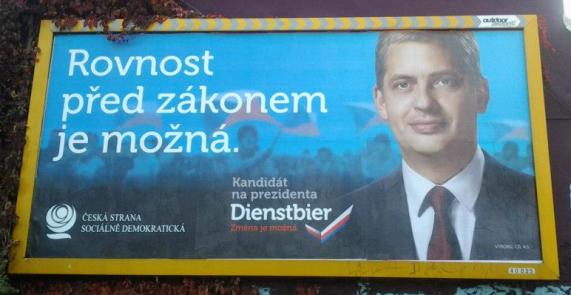 Jiří Dienstbier staví svou kampaň na možnosti změny, kterou komunikuje prostřednictvím tisku, outdooru a internetu.