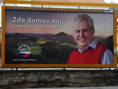 Druhý kandidát v pořadí Miloš Zeman je podle údajů společnosti Newton Media nejvíce zmiňovaným kandidátem v médiích za měsíc listopad. Zeman pro druhou vlnu své kampaně zvolil kombinaci tištěné a outdoorové reklamy, v níž sloganem odkazuje na státní hymnu a typickou českou krajinou.