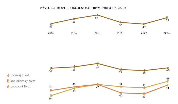 Spokojenost Čechů po letech poznamenaných pandemií covidu a finanční krizí opět roste. Nejvíce je to díky rodinnému životu, nicméně spokojenost posiluje také ve společenské a pracovní sféře. Proměňuje se i mediální chování, v němž se zvyšuje obliba podcastů a na plné čáře vítězí malé obrazovky nad těmi velkými. Vyplývá to z aktuální studie Lifestyle 2024 agentury Kantar, která dotazovala pěti tisíc respondentů ve věku 16 až 75 let.