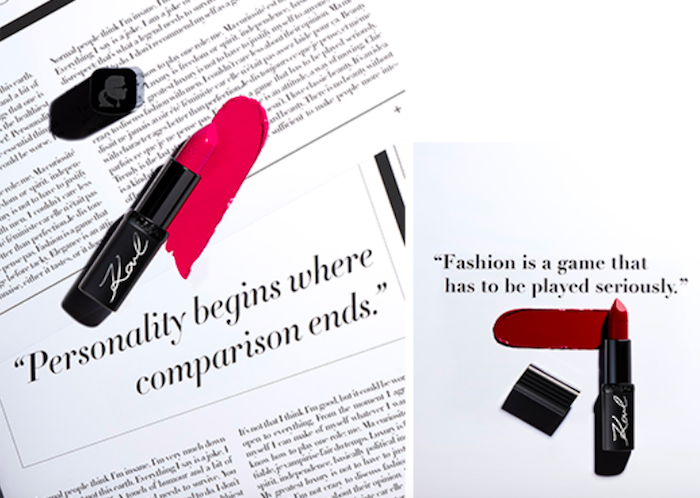 Karl Lagerfeld se zároveň spojuje také s kosmetickou značkou L’Oréal Paris, s níž uvádí i na českém trhu vlastní řadu dekorativní kosmetiky. „Tato kolekce se zrodila z našeho tvůrčího spojenectví: rockové elegance Karla Lagerfelda a energické vize krásy značky L’Oréal Paris,“ popisuje za L’Oréal Paris Delphine Viguier.