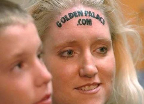 Nicméně někteří jsou schopni jít ve své ochotě poskytnout své tělo reklamě ještě dál a prodat tento omezený reklamní prostor na doživotí. Například Karolyne Smithová z Utahu si za 10 tisíc dolarů nechala v roce 2005 na čele vytetovat webové stránky stejného kasina, co propagoval na zádech výše zmíněný Bernard Hopkins.