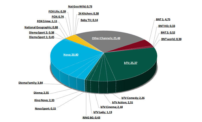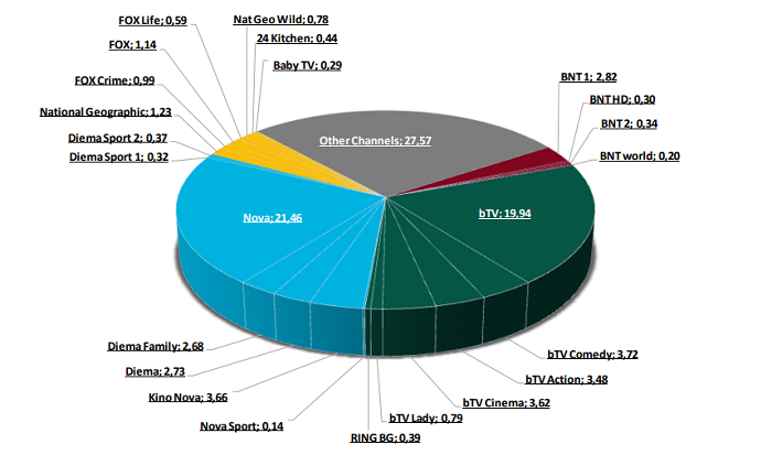 Na bulharském televizním trhu se tak Petr Kellner potká s vlastníkem tuzemské televize Nova, společností Central European Media Enterprises (CME). CME provozuje v Bulharsku stanice skupiny bTV, jde celkem o šest kanálů. Podíly bTV a Novy se liší podle cílových skupin. Zatímco v širší skupině 4+ má vyšší podíl bTV (25,4 %), v obchodní skupině 18-49 si vede lépe Nova (21,5 %), ukazují prosincová data za celodenní vysílání. V případě součtu všech kanálů obou skupin se podíl Novy v prosinci 2017 přiblížil k 30 % (4+), zatímco bTV k 34 %. V kategorii 18-49 byla situace vyrovnanější: skupina Nova měla necelých 31 % a bTV necelých 32 %.