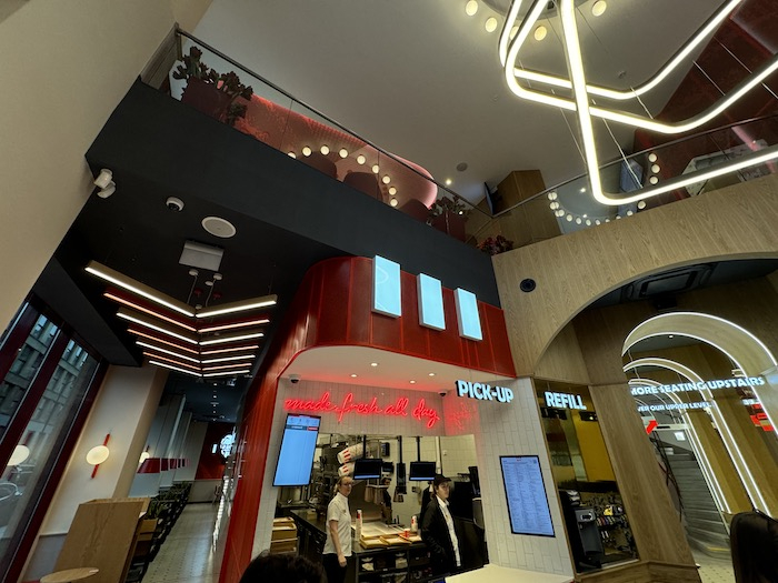 Unikátem je na vlajkové pobočce, jež cílí jak na tuzemské, tak zahraniční zákazníky, i nová služba table service, s níž si mohou hosté objednávat prostřednictvím aplikace či samoobslužných kiosků a obsluha jim jídlo donese až ke stolu. Pokud se osvědčí, uvažuje KFC i o jejím rozšíření na další pobočky.