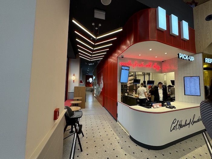 Nová restaurace, jež je v dané lokalitě již druhou pobočkou KFC, je největší v České republice. Na ploše 766 m2 nabídne 152 míst k sezení. Jedná se také o první pobočku značky, která sídlí v historické budově. V jejím interiéru se propojují moderní designové prvky s těmi původními, které se ve stylu art deco zachovaly dodnes. Všechny světelné instalace jsou energeticky úsporné, veškerý nábytek a dveře jsou z udržitelných zdrojů, vyrobené s ohledem na ekologie a navrženy tak, aby je bylo možné znovu použít nebo recyklovat.