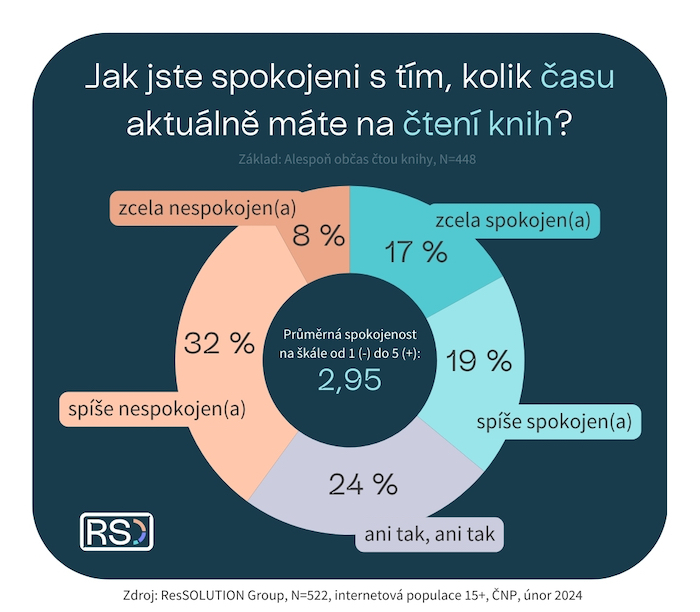 Velkou roli u čtenářství knih hraje čas: nespokojenost s tím, kolik ho aktuálně na čtení mají, vyjádřily dvě pětiny respondentů, kteří čtou alespoň někdy. Těch, kteří jsou s dobou strávenou s knihami momentálně spokojení, je v internetové populaci 36 %.