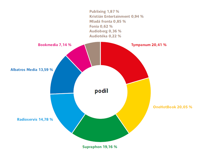 Třemi nejsilnějšími vydavateli audioknih a mluveného slova byli v roce 2018 Tympanum (20,41 %), OneHotBook (20,05 %) a Supraphon (19,16 %). Výrazně je zastoupen ještě Radioservis (14,78 %) a Albatros Media (13,59 %).