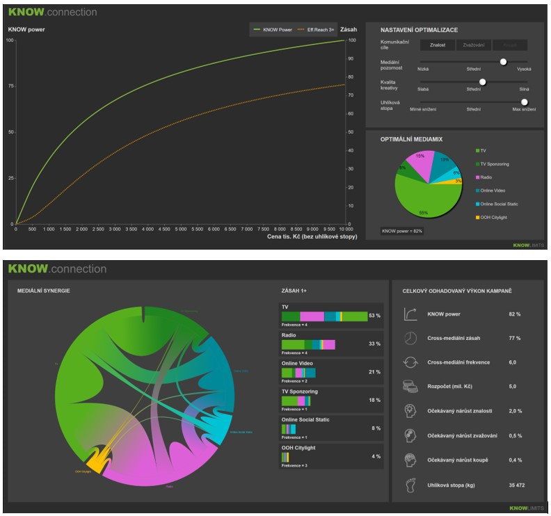 „Pracujeme čistě s lokálními, aktuálními daty, z jednoho zdroje a s konkrétními mediálními cenami, které jsme schopni garantovat. Při optimalizaci se neomezujeme pouze na maximalizaci mediálních parametrů (cena, TRP, afinita, reach, efektivní reach apod.), ale pomocí Know.tools doporučujeme takové mediální strategie, které mají schopnost dosáhnout cílů z hlediska zvýšení znalosti, volby produktu nebo touhy koupit značku prostřednictvím médií, které mají schopnost vyvolat pozornost a zanechají nejmenší uhlíkovou stopu za optimální celkovou cenu komunikace,“ přiblížil Zdeněk Kubena, research director Knowlimits Group.