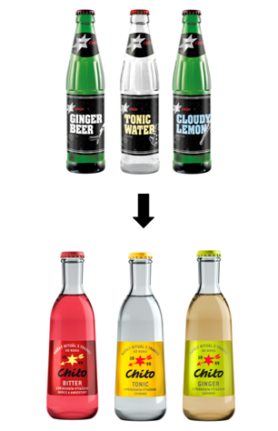 Chito se v gastro segmentu prezentuje novou 250 ml skleněnou lahví, v retailu PET lahví o objemu 1,5 l, a to ve třech variantách: Chito Tonik s chininem, Chito Ginger se zázvorem a Chito Bitter s přírodním výtažkem z hořce a angostury. Poslední z nich se hodí pro tzv. nealko aperitiv s bylinkami, který bude výrazněji podpořen příští rok v místě prodeje.