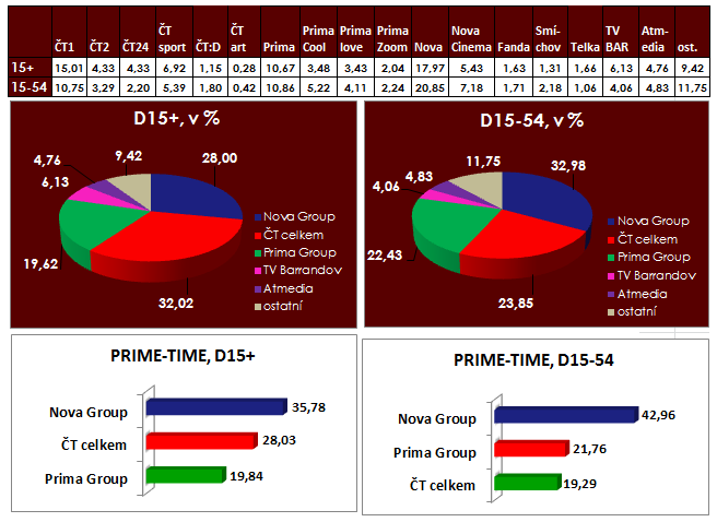 Komedie Zdeňka Trošky Doktor od jezera hrochů (TV Nova) se v sobotu večer stala s náskokem nejsledovanějším sobotním pořadem po 20. hodině. V cílové skupině diváků starších 15 let ji v průměru sledovalo 716 tisíc diváků (share 24 %). Také u mladších diváků 15-54 byla první volbou, když si ji vybralo téměř třikrát více diváků než další z nabízených pořadů. To celkově pomohlo k tomu, že skupina Nova získala nejvyšší podíl vhlavním vysílacím čase v obou sledovaných skupinách – v té mladší se značným náskokem.