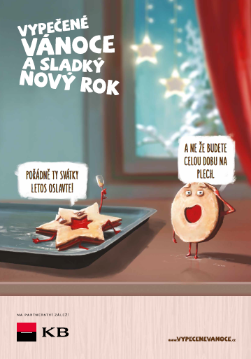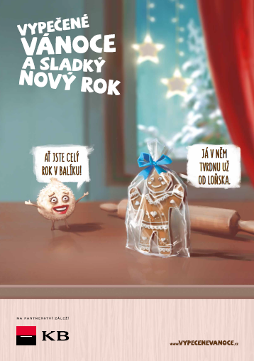 Od začátku prosince komunikuje Komerční banka ve vánočním tónu. Kampaní „Vypečené Vánoce“ chce nejen popřát hezké svátky, ale snaží se i předvánoční období zpříjemnit. Zatímco v loňském roce posílala společnost „kapřání“, letos vsadila na motiv vánočního cukroví.