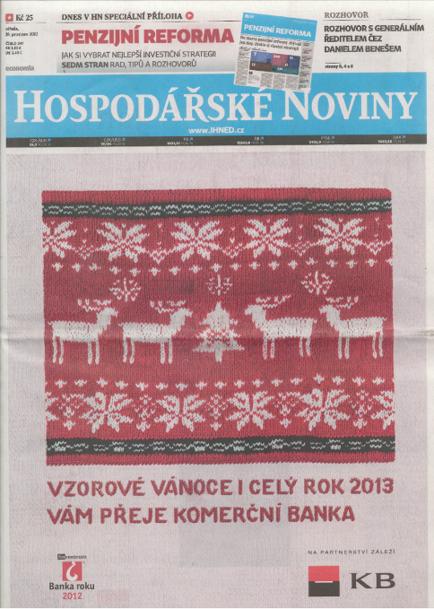 Ve středu 19. prosince s tímto motivem vyšly Hospodářské noviny s přebalem Komerční banky.