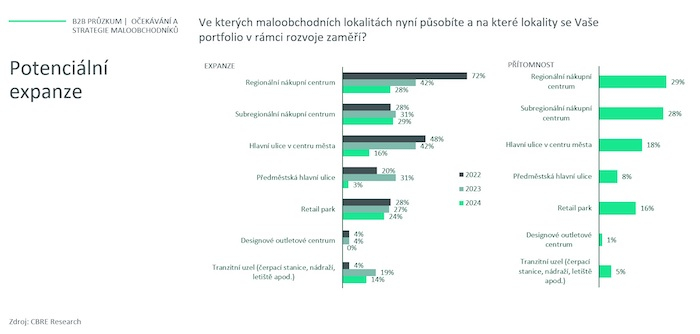 Z pohledu preferovaných lokalit pro expanzi jsou jednoznačně stále populární regionální obchodní centra s větší spádovou oblastí. Dlouhodobě také roste obliba retailových parků, a to i u maloobchodníků, kteří v minulosti tento typ nemovitostí nevyhledávali.