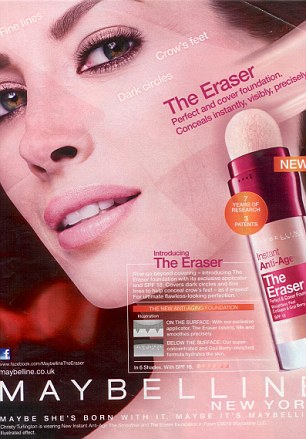 Reklama s modelkou Christy Turlingtonovou, propagující korektor od Maybelline, doplatila na srovnávání pleti před a po aplikaci korektoru, které ASA ohodnotila jako přehnanou a zavádějící.